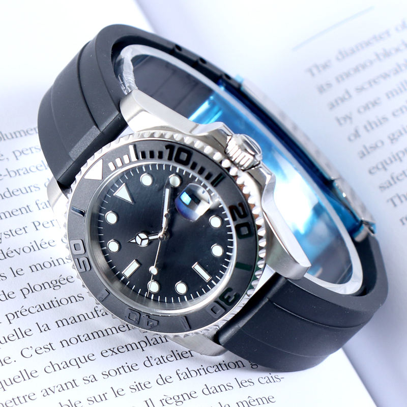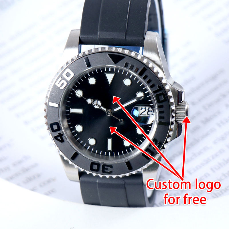 Montre automatique mécanique sans logo NH35 Sub avec cadran date, mouvement en cristal saphir, étanche 10 bars, bracelet en caoutchouc, montre de luxe pour homme
