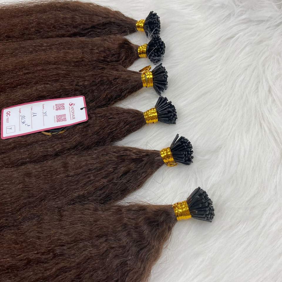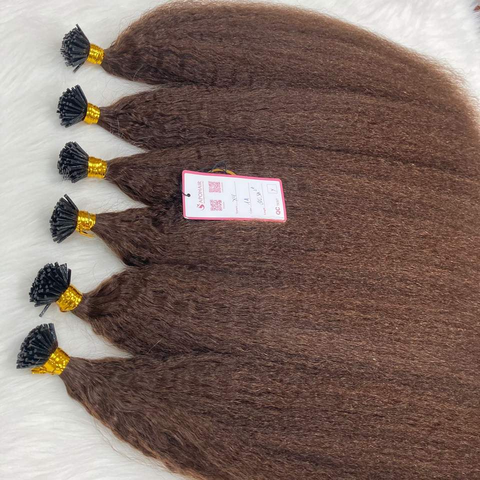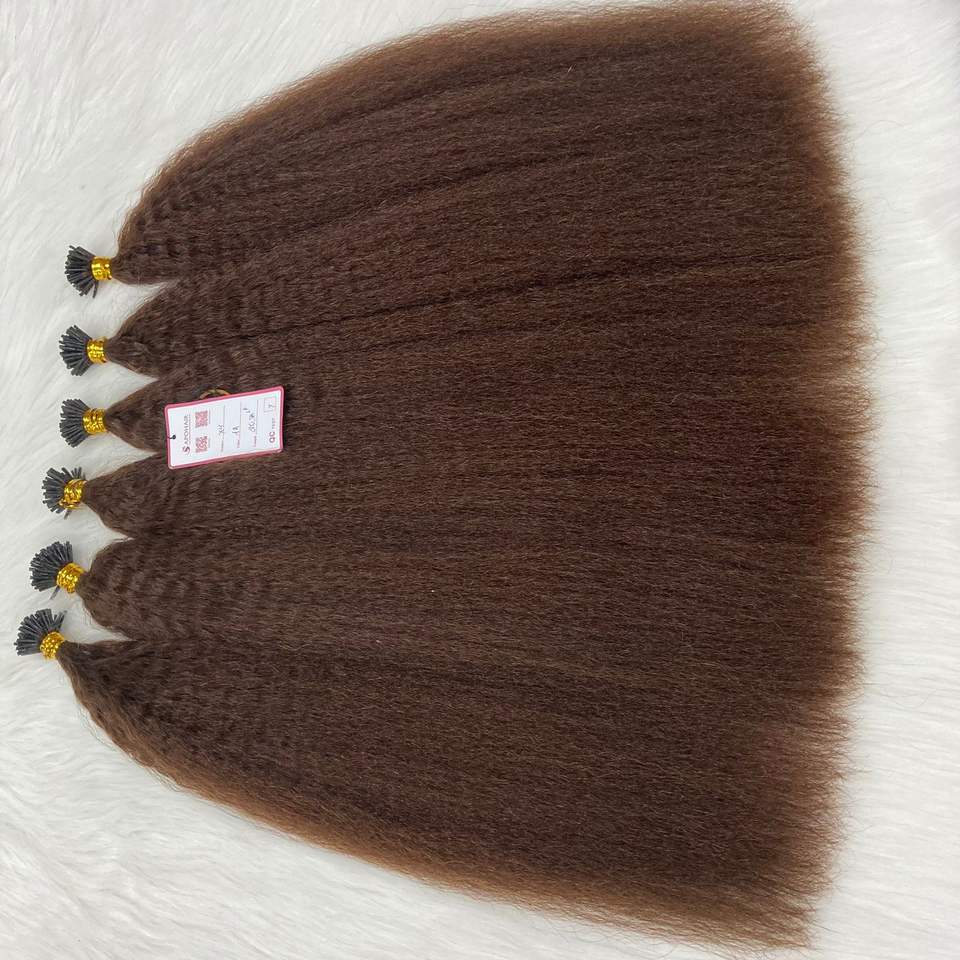 NO TANGLE brut non traité Double-dessiné brun foncé kératine cuticule aligné vietnamien crépus droit I pointe Remy lâche vague profonde