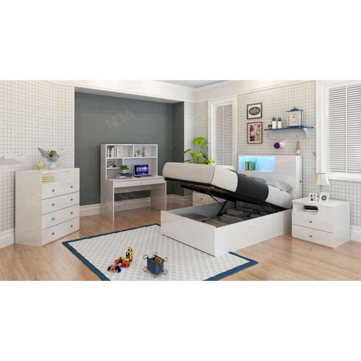 NOVA White Dormitorio Lit LED taille complète Chambre à coucher complète Ensemble de meubles pour adultes/enfants