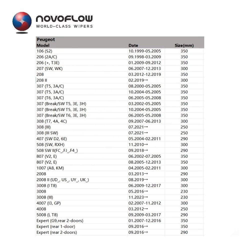 NOVOFLOW Multifunctional Rear Wiper Blade with 3 Adapters for Peugeot 208 208 II 308 308 III 508 2008 3008 4008 5008 Models