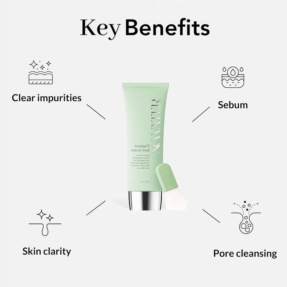 NOWATER Prestige 73 Crème à l'Arbre à Thé 70g | Masque Peel-Off K-Beauty Soin Anti-Acné Apaisant et Raffermissant pour les Pores, Effet Peau de Verre