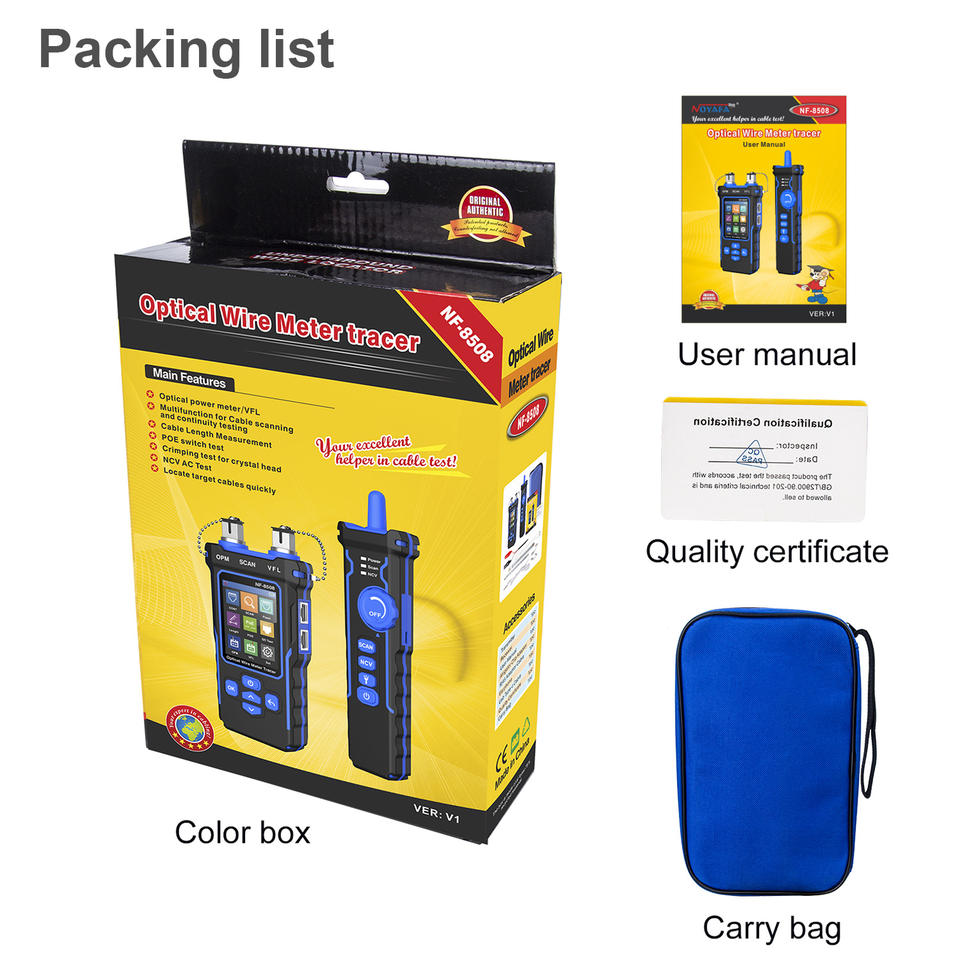 NOYAFA NF-8508 Testeur de câbles réseau combiné innovant OPM VFL, traqueur de fils CAT5/CAT6, tout-en-un, avec fonctions de test de continuité, POE, sertissage et NCV