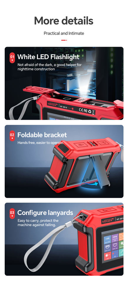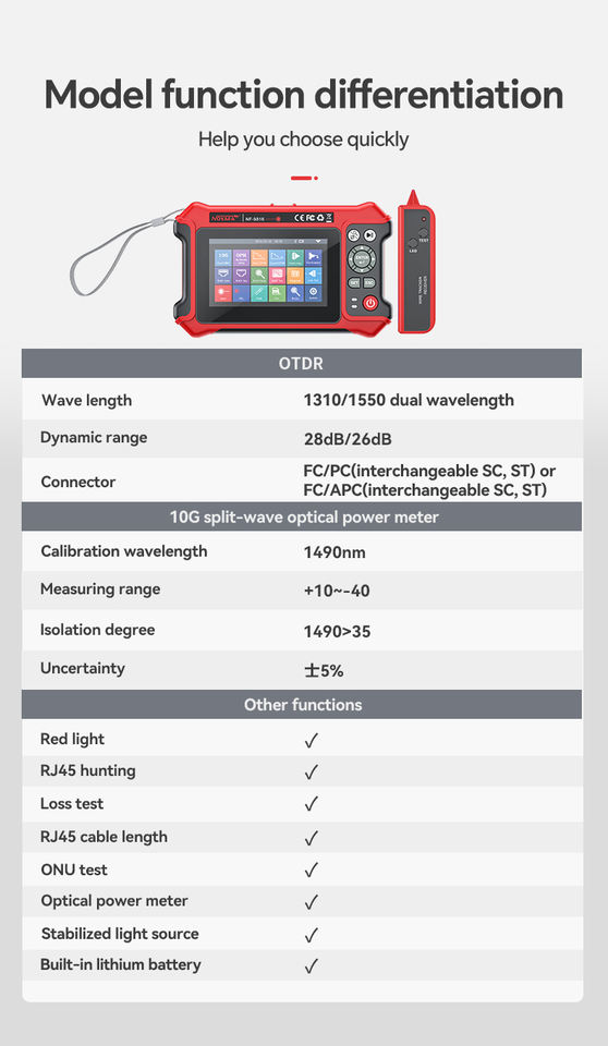 Testeur OTDR compact NOYAFA NF-9816 16-en-1 10G avec double VFL/Mappe d'événements, multifonction, vérification de l'état final RJ45, fibre optique APC