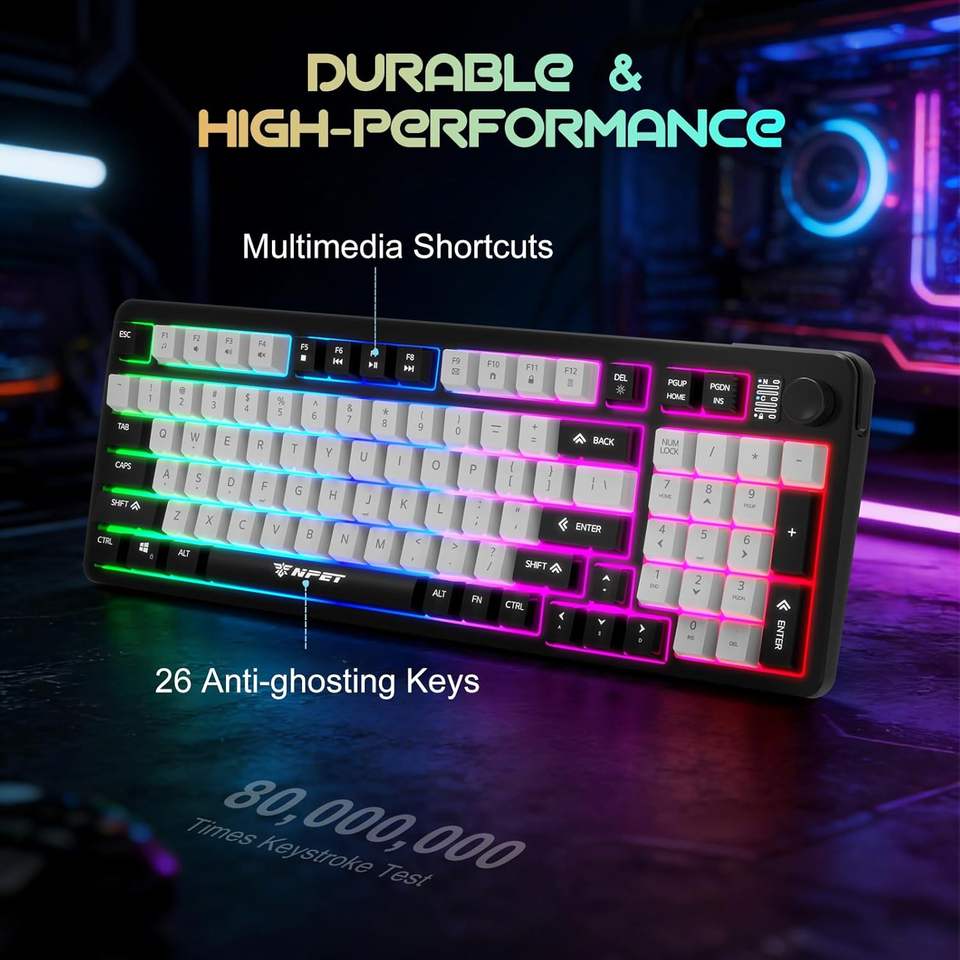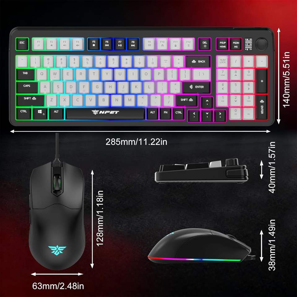 Combo clavier et souris filaire NPET, 98 touches, sensation mécanique, membrane silencieuse, 14 modes RGB, pour jeux PC, ordinateur portable, console