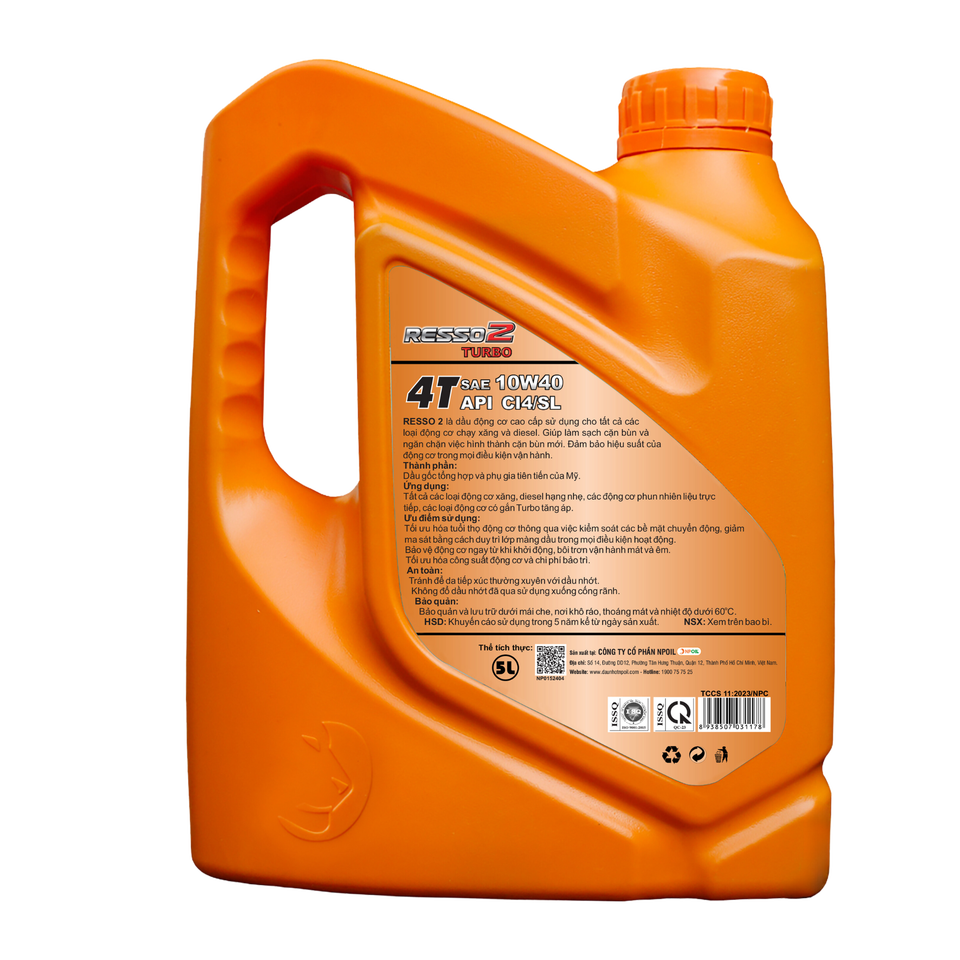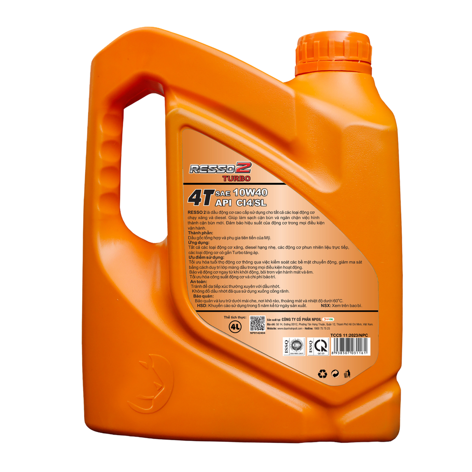 Huile moteur NPOIL RESSO 2 TURBO 10W40 4L 5L 6L Huile de base et additifs premium Huile moteur haute qualité Vietnam
