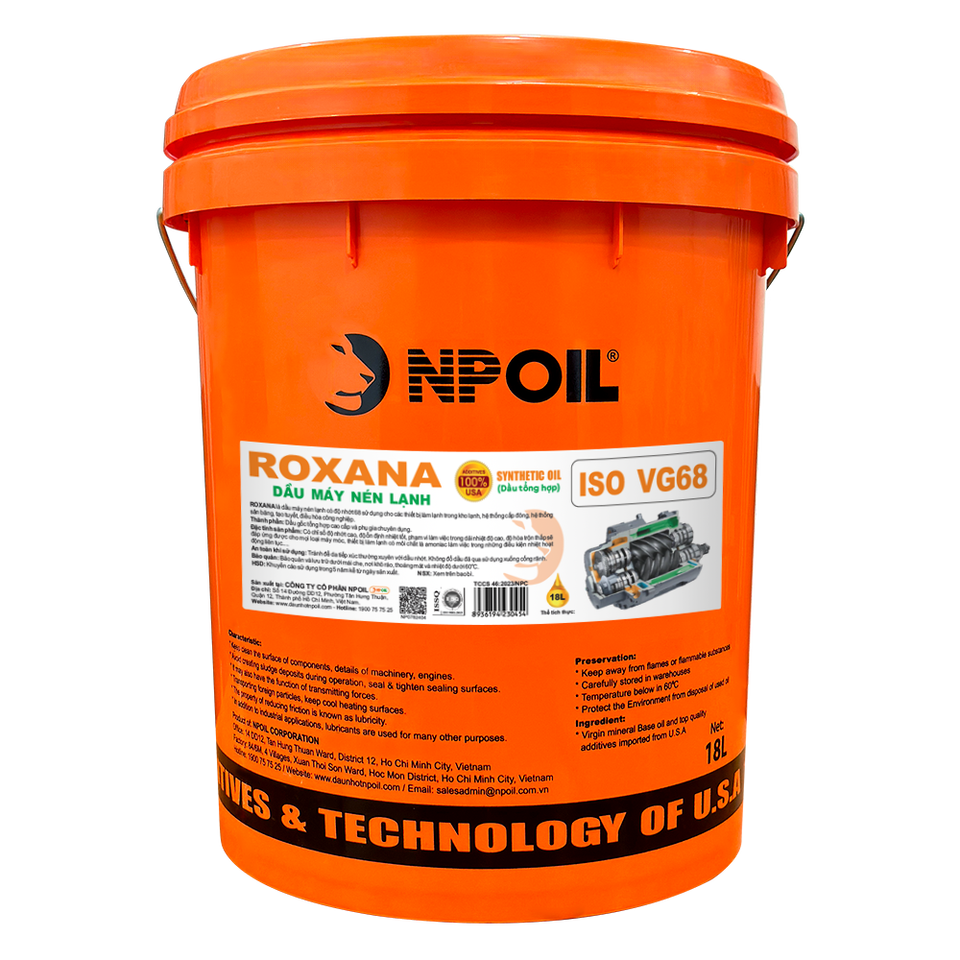 Huile de compresseur frigorifique synthétique NPOIL ROXANA 68, seau de 18 L, fût de 200 L, huile industrielle pour systèmes de réfrigération industrielle