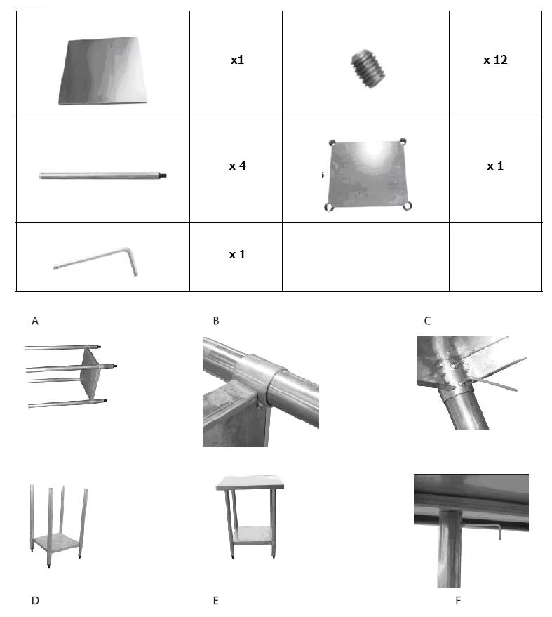Zones de préparation des aliments, Planchers mezzanines, Étagères et rayonnages de stockage, Plans de travail de préparationApplication