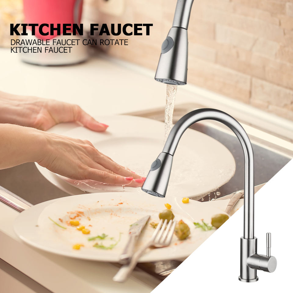 Robinet de cuisine à une poignée certifié NSF avec bec rétractable et pulvérisateur vers le bas Installation à 2 trous Distributeur d'eau chaude et froide
