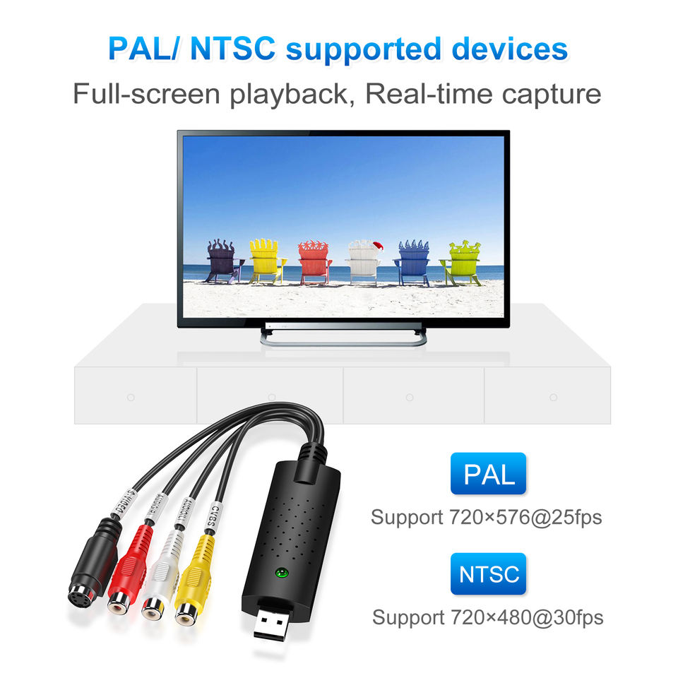 Carte de capture audio et vidéo RCA vers USB NTSC PAL 720X480 pour ordinateur, lecteur DVD, magnétoscope, caméra Hi8, caméra DV, boîtier TV