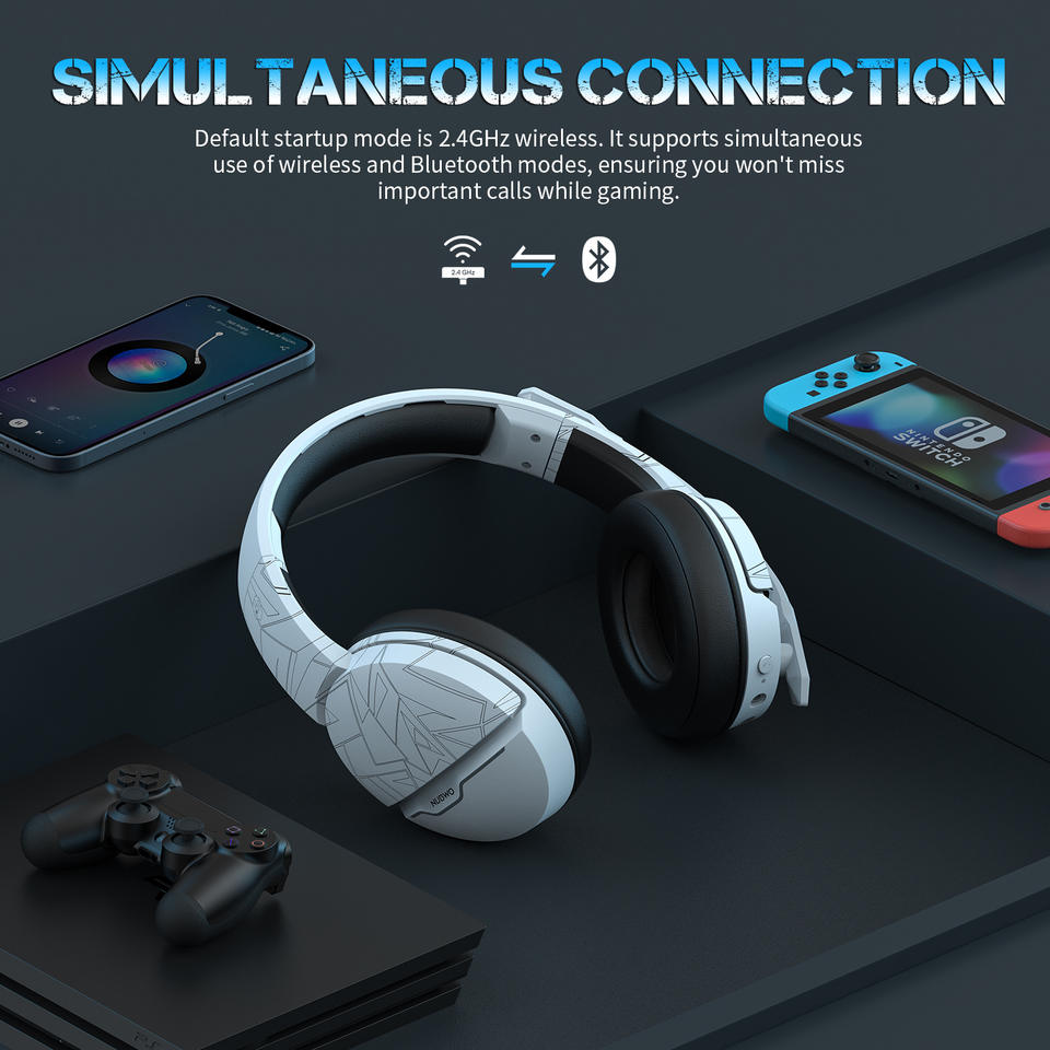 Casque de jeu sans fil double NUBWO G08 avec microphone pour PS5, PS4, PC, mobile, Switch : 2,4 GHz sans fil +