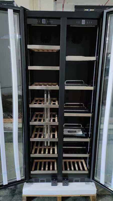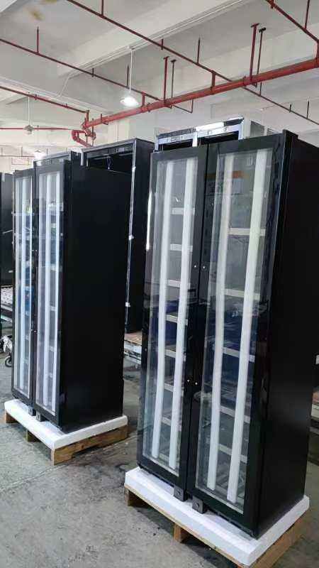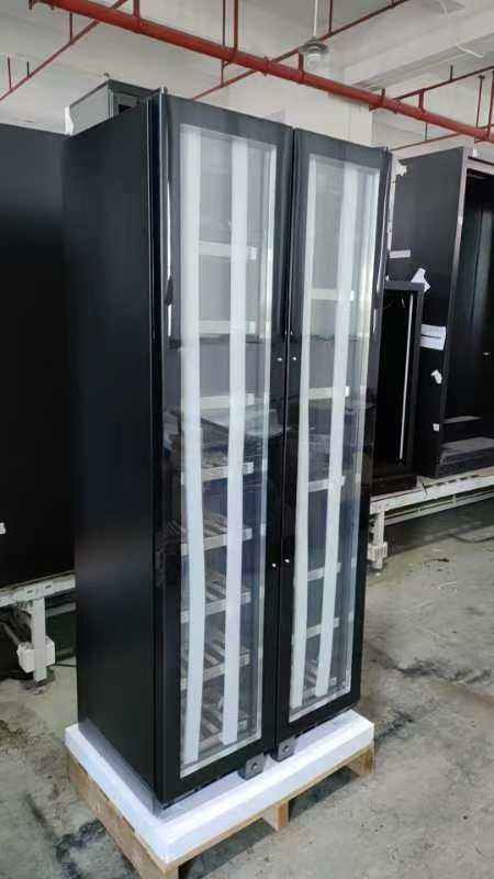 Réfrigérateur à bière et à vin rouge NUELEAD NE-385, grande capacité, deux portes en verre, noir, commercial, hôtel, moderne, escalier haut