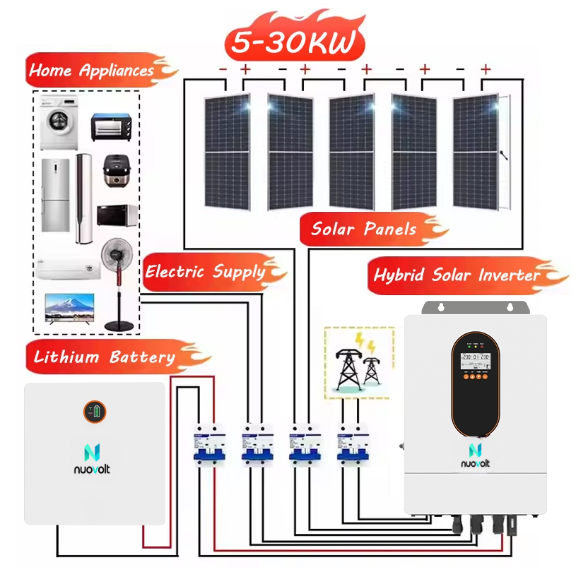 Système solaire NUOVOLT 5KW Kit solaire domestique hors réseau Système d'énergie solaire hors réseau 10KW Système solaire autonome 30KW Système d'énergie solaire hybride