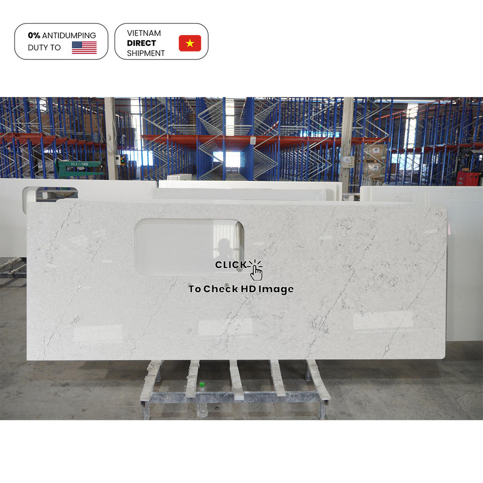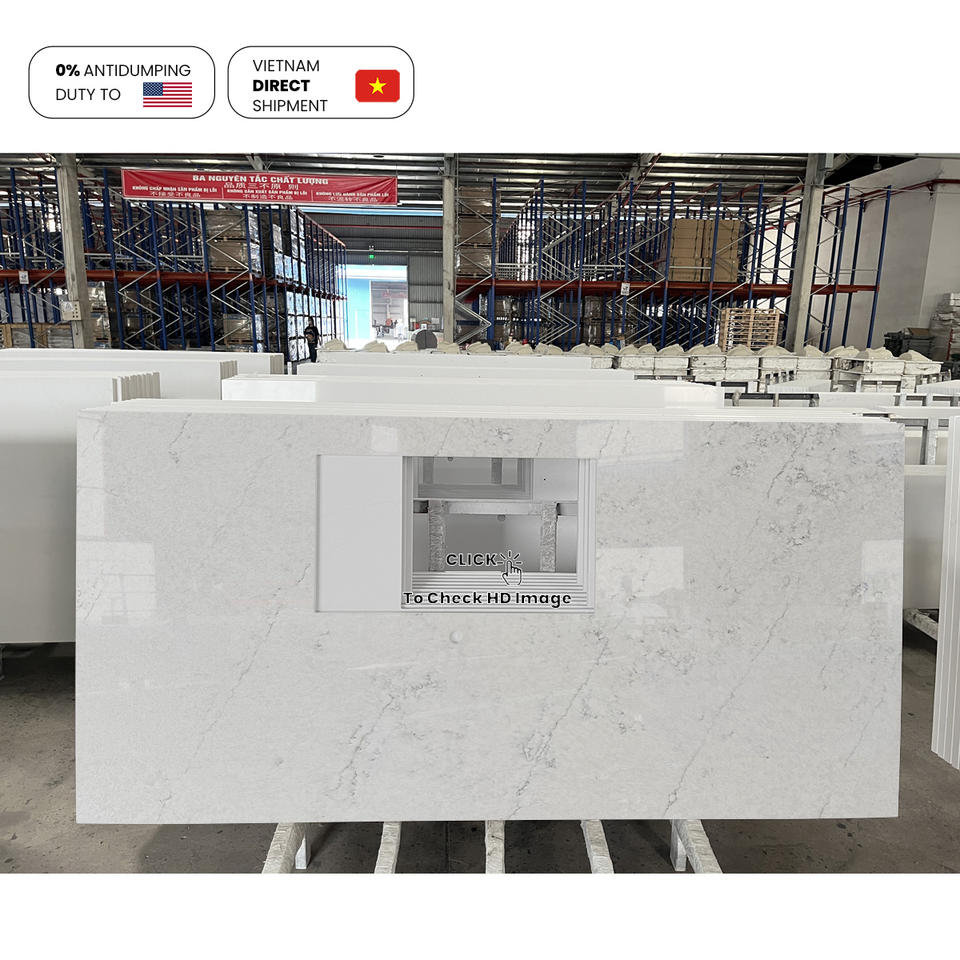 NV1006 Remarquable villa d'ingénierie résidentielle moderne à faible entretien Veines légères Pierre de quartz artificielle Dalle d'îlot de cuisine