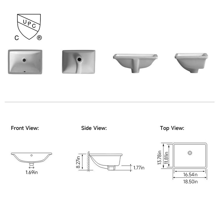 NV2282A CUPC Évier de salle de bain sous plan en quartz technique, direct usine, 16.54x11.81x8.27in, résistant à l'eau, pour usage en centres commerciaux et villas