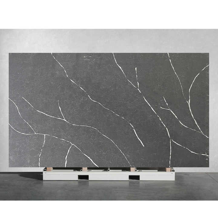 NV313 Dalle de quartz à faible entretien grain de blanc givré Dalle de pierre de quartz jumbo grise pour panneau mural de comptoir de cuisine