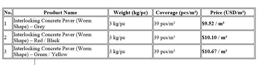 Pavé en béton emboîtable solide en forme de verme NVH-S6 avec un design moderne
