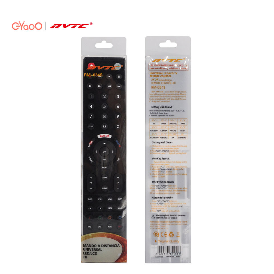 Télécommande universelle intelligente LED LCD IR NVTC RM-034S pour Samsung LG Sony