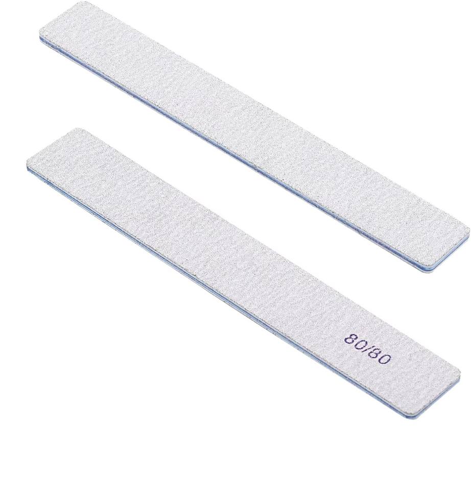 Lime à ongles 100/180, papier abrasif japonais sur support plastique 1,8 mm — tailles 17,8×2,8 / 17,8×2,0 / 9×2,0 cm, pack de 25, logo personnalisable