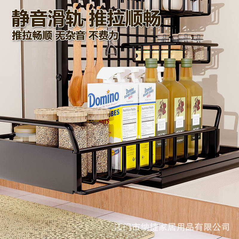 Étagère de rangement coulissante pour cuisine Najie, organisateur de placard multifonction, porte-épices, porte-assiettes, profondeur 8-11,9 pouces, noir