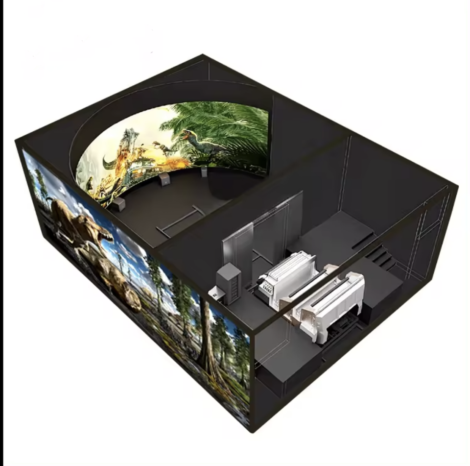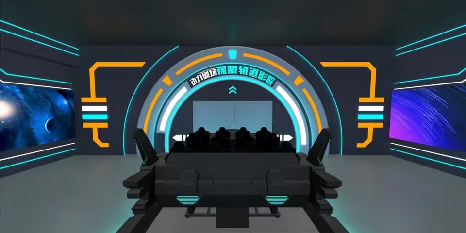 Technologie à l'œil nu, cinéma 5D avec piste volante, système de cinéma 3D, rail de siège personnalisé, cinéma 9D en intérieur, Jurassic World, aéroport, métal