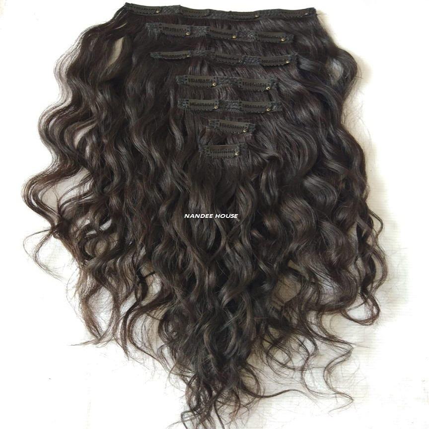 Nandee Hous 100% Extensions de cheveux indiens vierges Remy 18 pouces Clip-In Natural Wave DIY Disponible Extensions de cheveux humains en dentelle