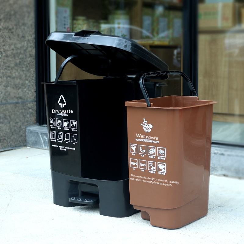 Poubelle de tri à pédale Nanjing à quatre couleurs, 60L, double tri, 20L, en plastique, pour la maison, l'hôtel, les entreprises, les écoles, grande taille