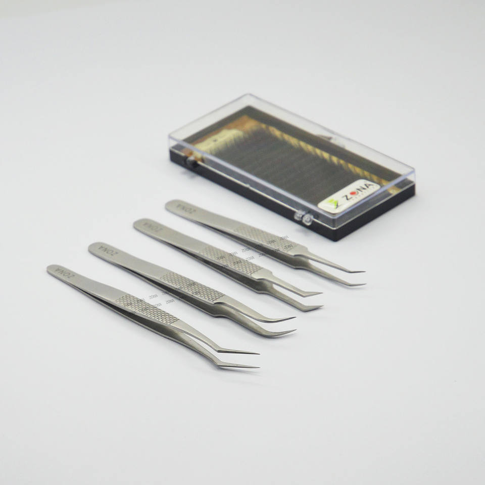 Vente en gros de pinces à cils en fibre nano avec logo imprimé Pince à épiler incurvée forte pour extension de cils
