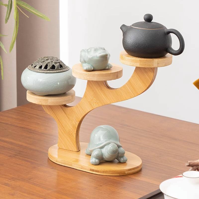 Nanzhu petit support antique en bois massif pour service à thé ornements stockage multicouche mur et présentoir pour la décoration du salon