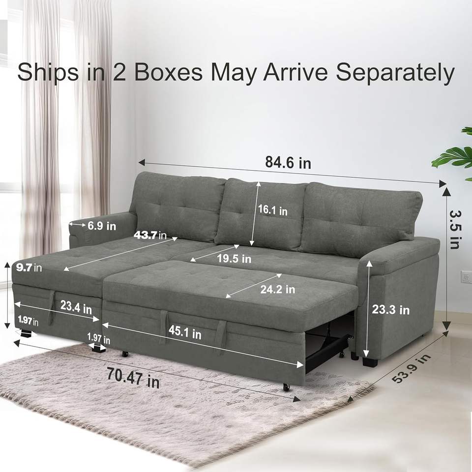 Naomi Home Canapé-lit convertible gris/velours Coussins durables Confort tranquille Chaise invitante Salon sectionnel