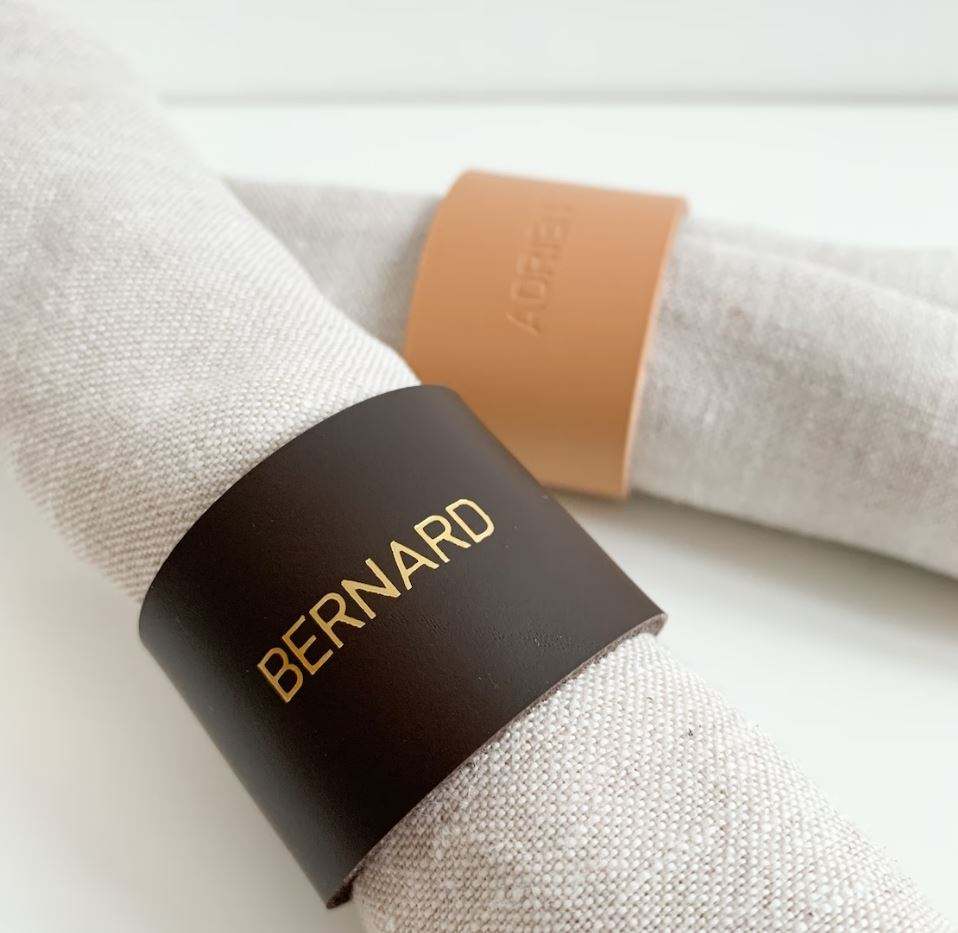 Napkin ring customizable cycled leather handcrafted