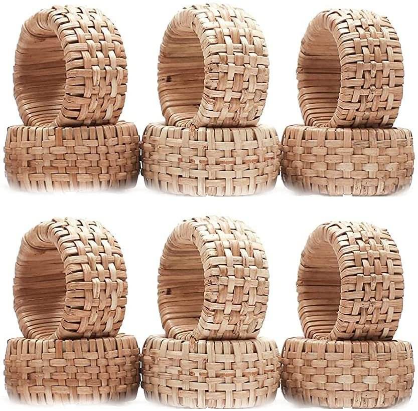 Ensemble de 12 porte-serviettes en rotin, ronds de serviette en vrac pour décoration de fête Table à manger TienPhong artisanat