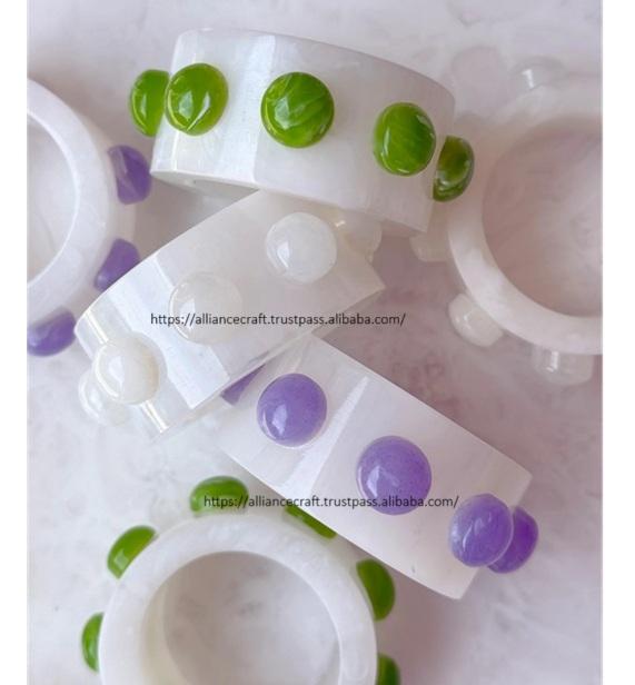 Ronds de serviette pour cuisine et restaurant But Agate Ronds de serviette Couleur bleue Résine époxy hautement polonaise Art fait à la main en Inde
