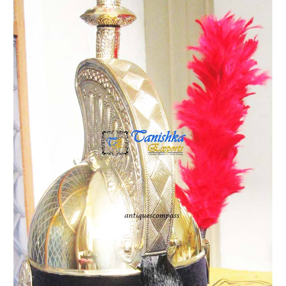 Casque de chevalier en laiton fait main, durable, de style Napoléon, armure médiévale française, cadeau décoratif, casque décoratif avec plume rouge en laiton