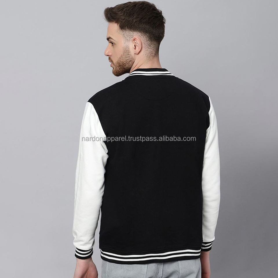 Nardon Apparel Logo personnalisé Varsity Jacket Manches en cuir Broderie Noir Couple College Baseball Veste pour homme Varisty Jacket