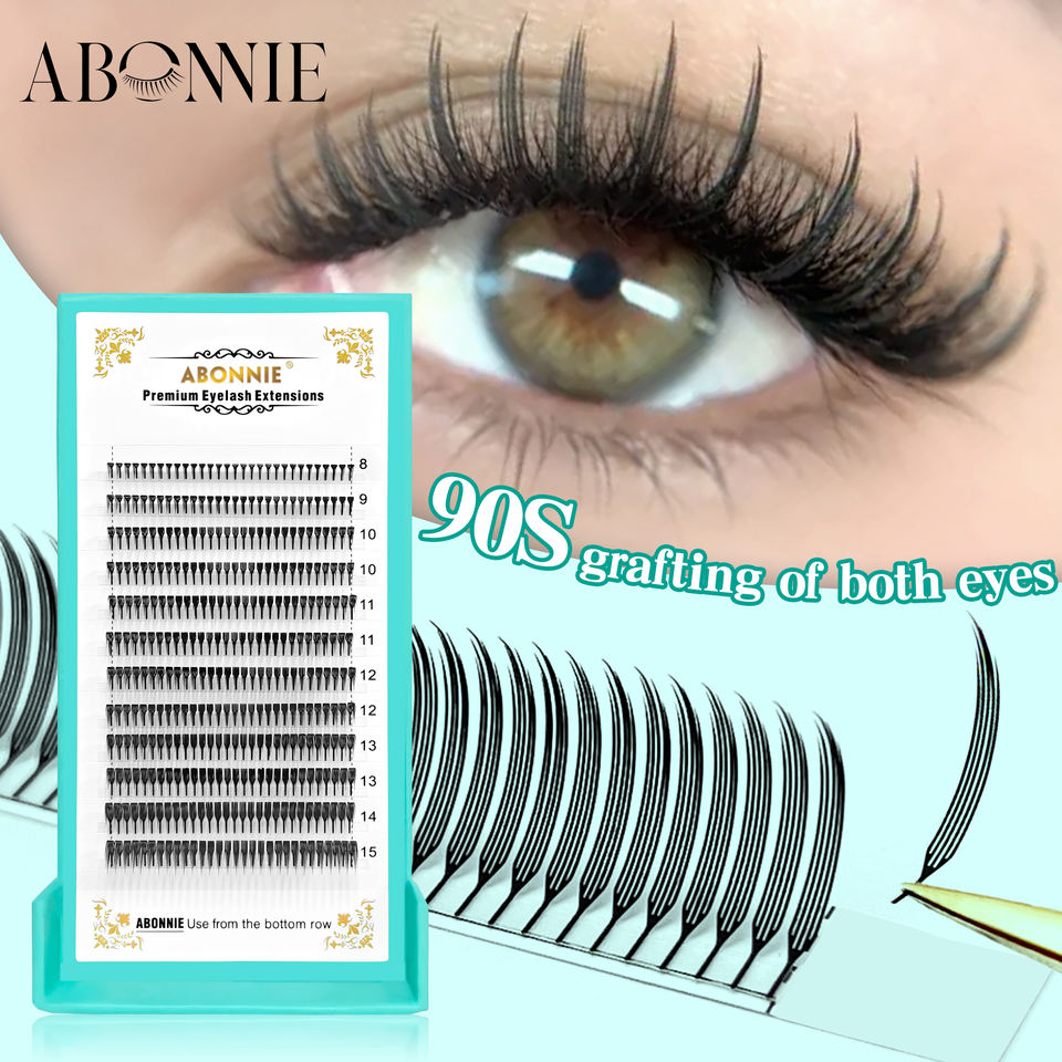 Extensions de cils à pointes fines style anime, pré-fabriquées, 16-20mm, finition mate, en plateaux