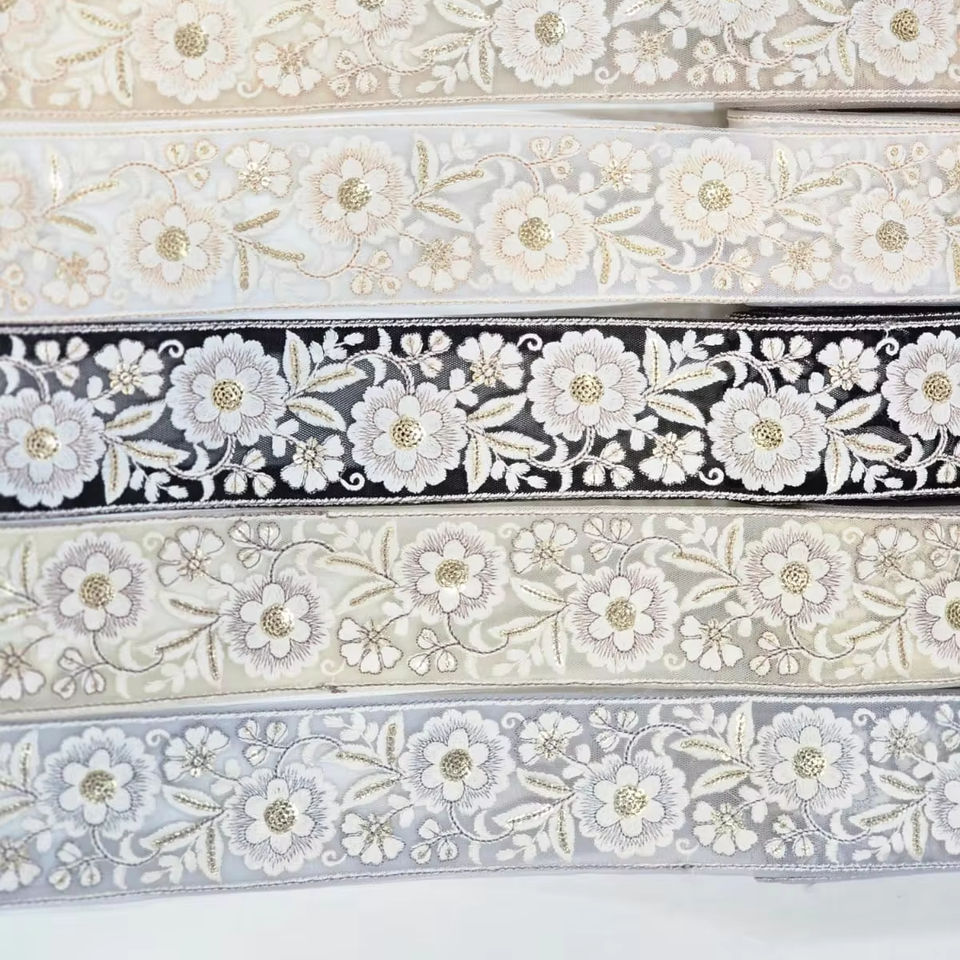 Narrow Vintage Ethnic Style Lace Trim In-Stock Floral Braided Wire Gold Sequin Embroidery Bias Tape Excellent Readability Search