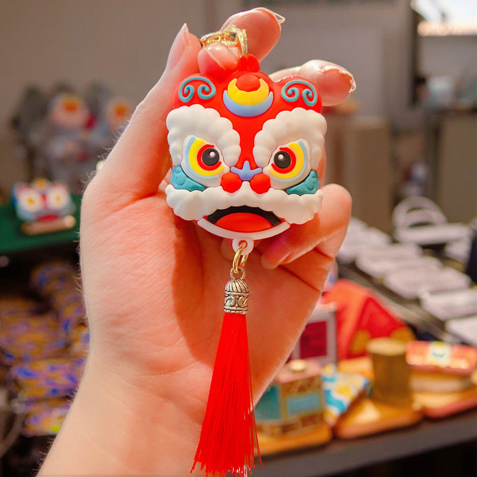 National Tide Wind Lion Dance Porte-clés Nouvelle mascotte en métal de cette année Poupées pendentif en gros Petits cadeaux pour cartables