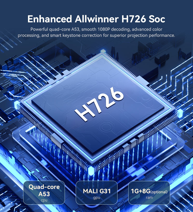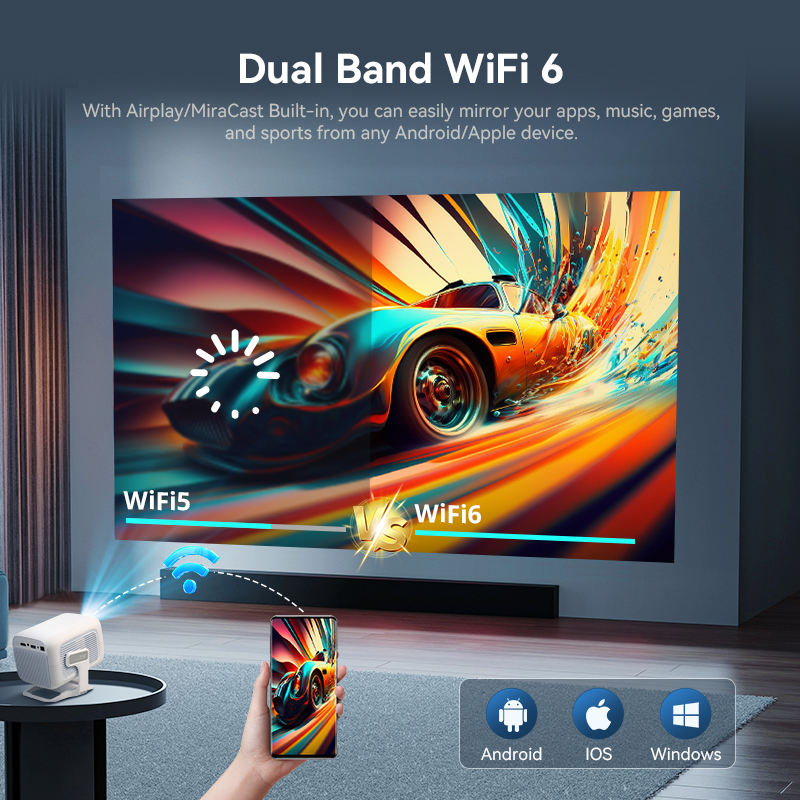 Projecteur natif 1080P 8K, ports USB+HDMI, faible bruit ≤30dB, WiFi 6 Bluetooth 5.4 Android 14 pour cinéma maison