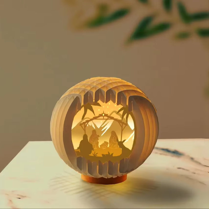 Nativité Sphère Pop Up carte Boule de neige de Noël Pop Up Lightbox 3D Papercut (Sphère Pop Up 6.29 pouces)