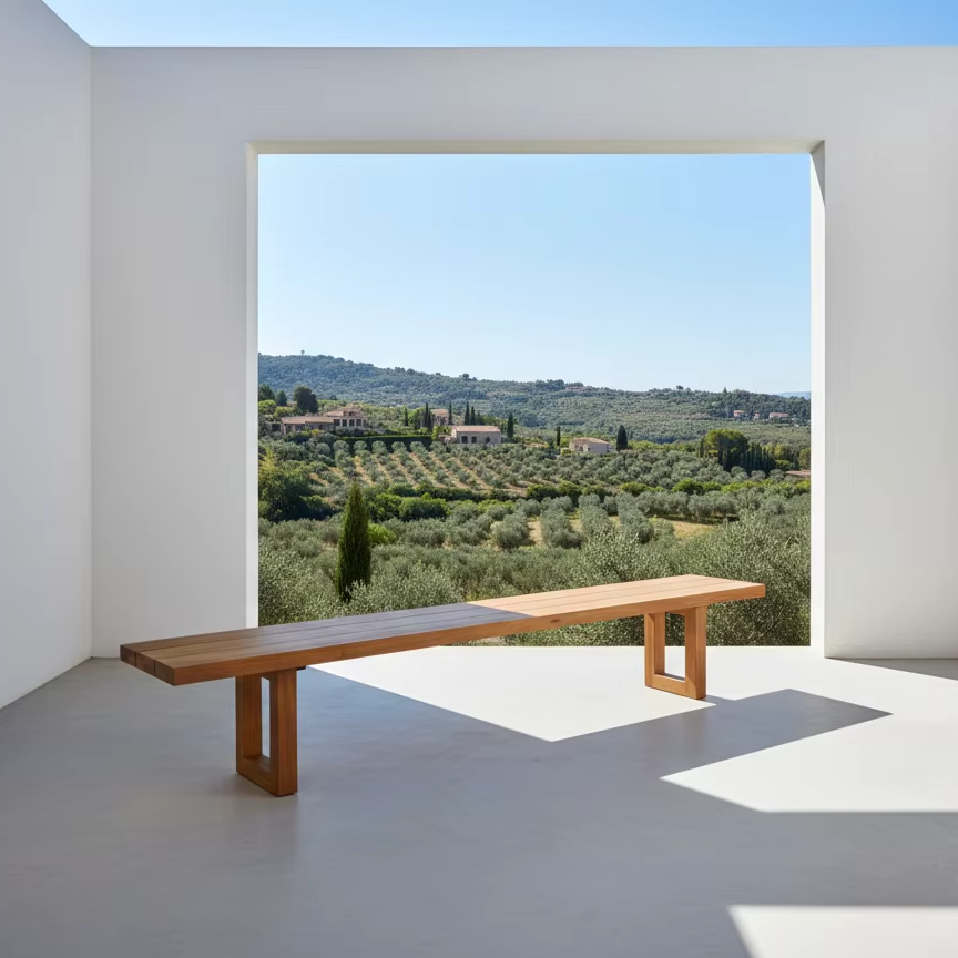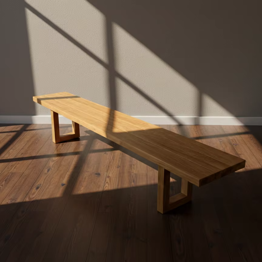 Banc en bois massif Natsuki avec finition naturelle, design minimaliste moderne, durable et facile à nettoyer, pour salon, extérieur