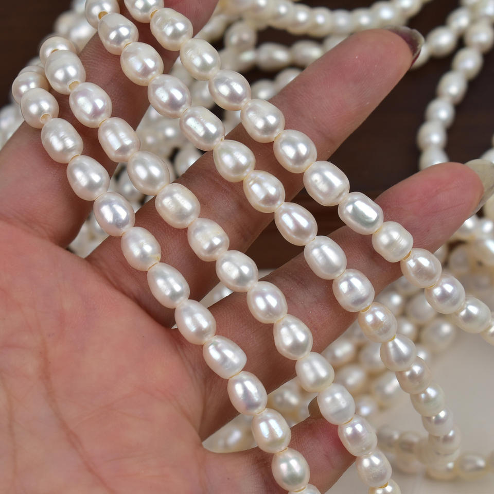 Collier de perles d'eau douce naturelles de 7-8 mm en forme de riz blanc, grand trou, accessoires de bijoux semi-finis avec perles colorées