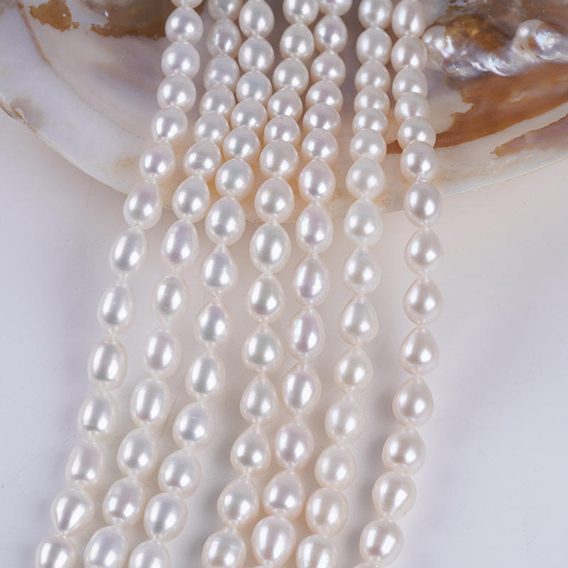 Collier semi-fini en perles d'eau douce naturelles de 8-9 mm, forme de riz, bon lustre avec de légères imperfections pour la fabrication de bijoux en perles en vrac