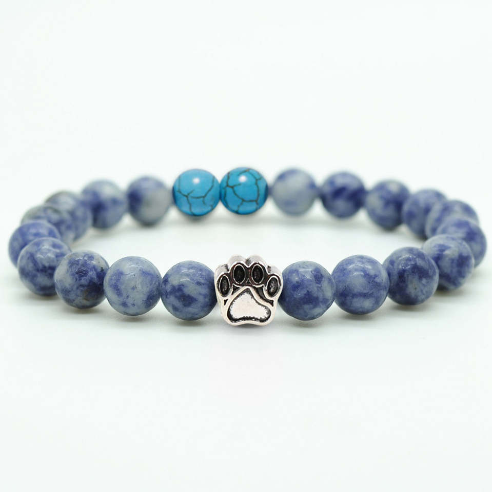 Packaging Details:Bracelet en perles d'agate de cristal de guérison naturelle de 8mm Bracelet élastique d'empreinte de chat en alliage pour femmes bijoux