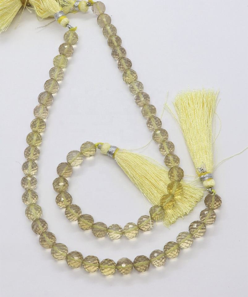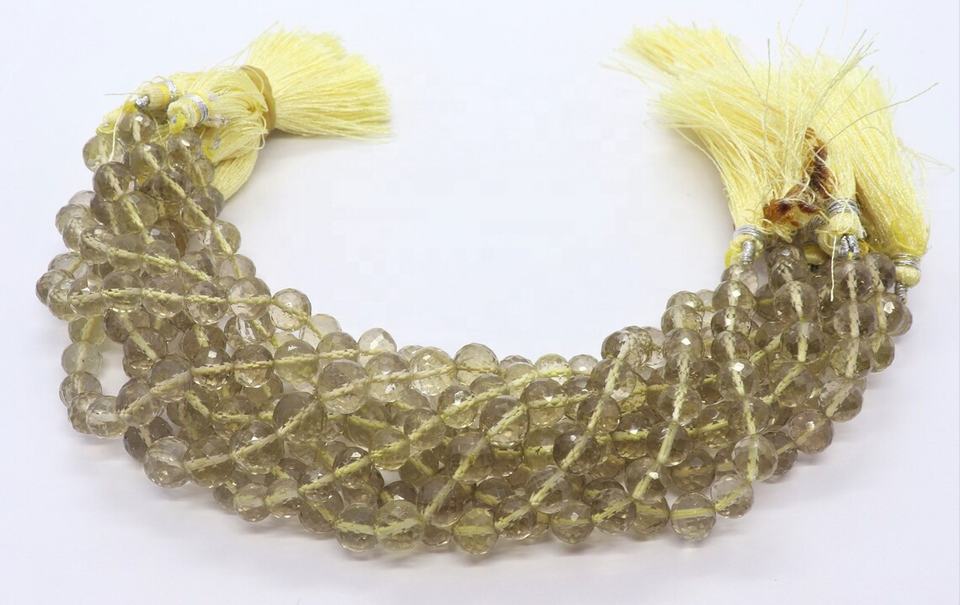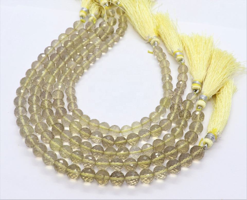 Quartz citron naturel de 8mm à facettes forme ronde perles de pierres précieuses en vrac brin Quartz fait à la main pour la fabrication de bijoux prix de gros en vrac