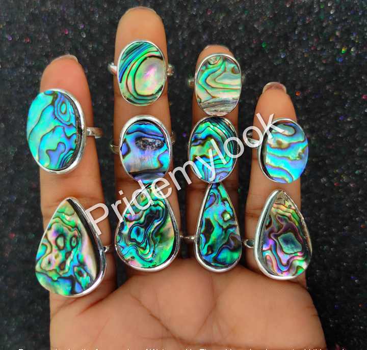 Bagues en coquille d'ormeau, bagues en pierres précieuses