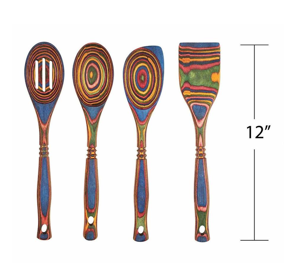 Ensemble d'outils de cuisine en bois de manguier d'acacia naturel fabriqué en Inde bol à pincer rond plusieurs couleurs communes