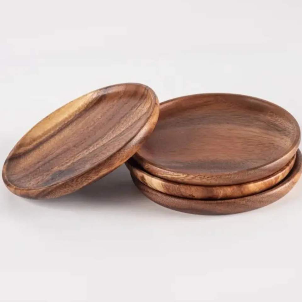 Assiette ronde en bois d'acacia naturel pour servir les aliments, assiette à dîner en bois écologique