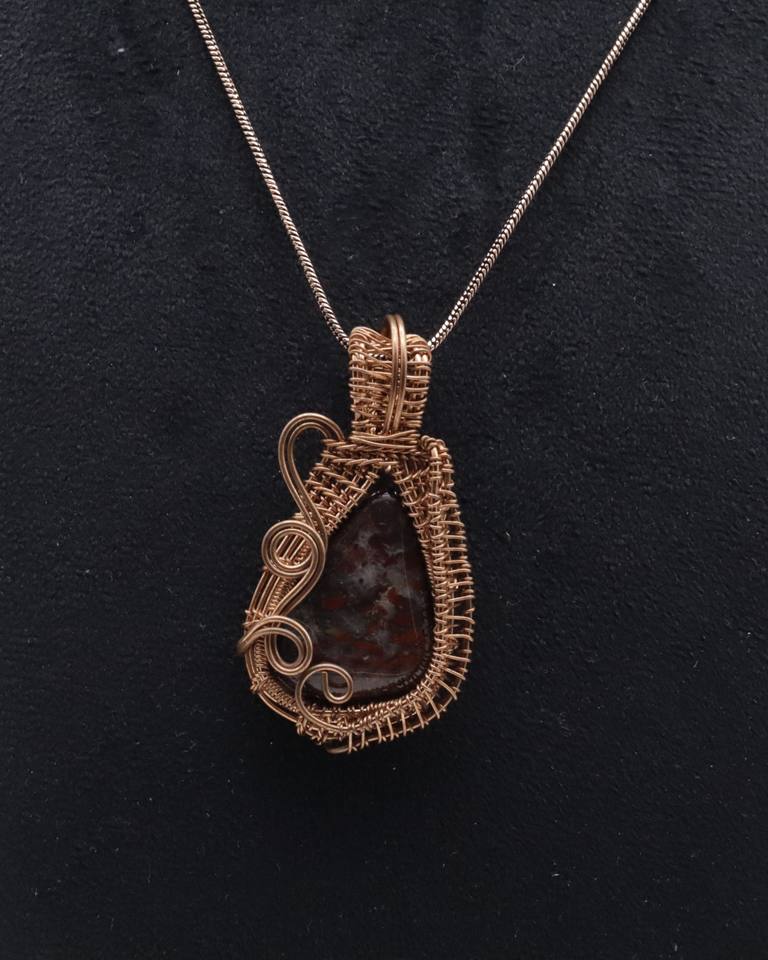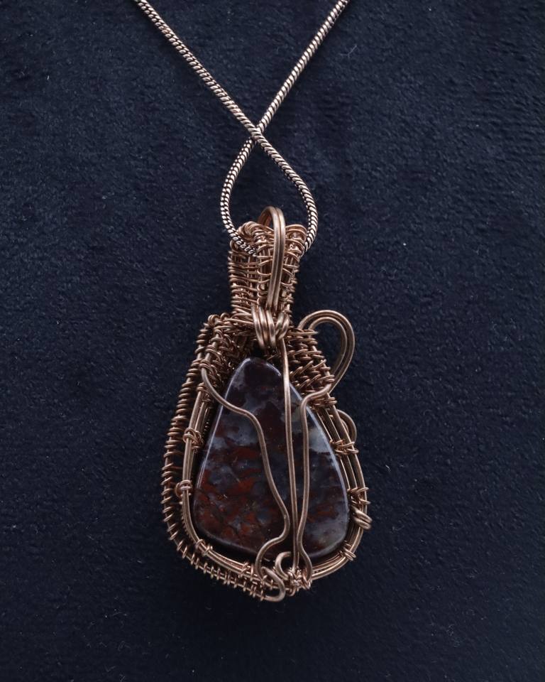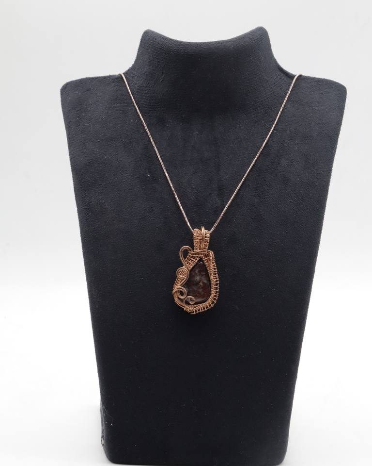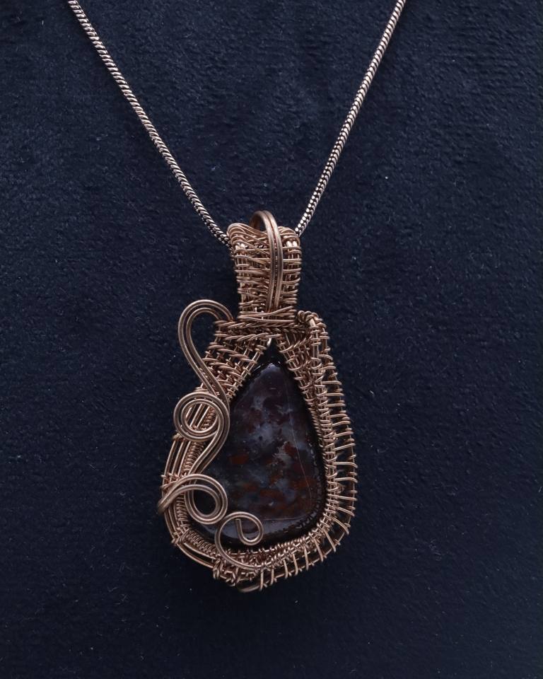 Collier en agate naturelle avec pendentif enroulé de fil de cuivre | Collier artisanal bohème en pierres précieuses