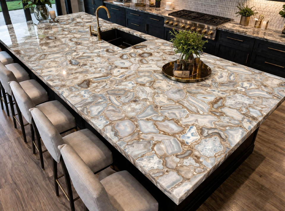 Plateau de table en agate naturelle, meubles en pierre faits à la main, table basse de luxe, décoration intérieure, meubles en cristal de guérison, idée cadeau unique