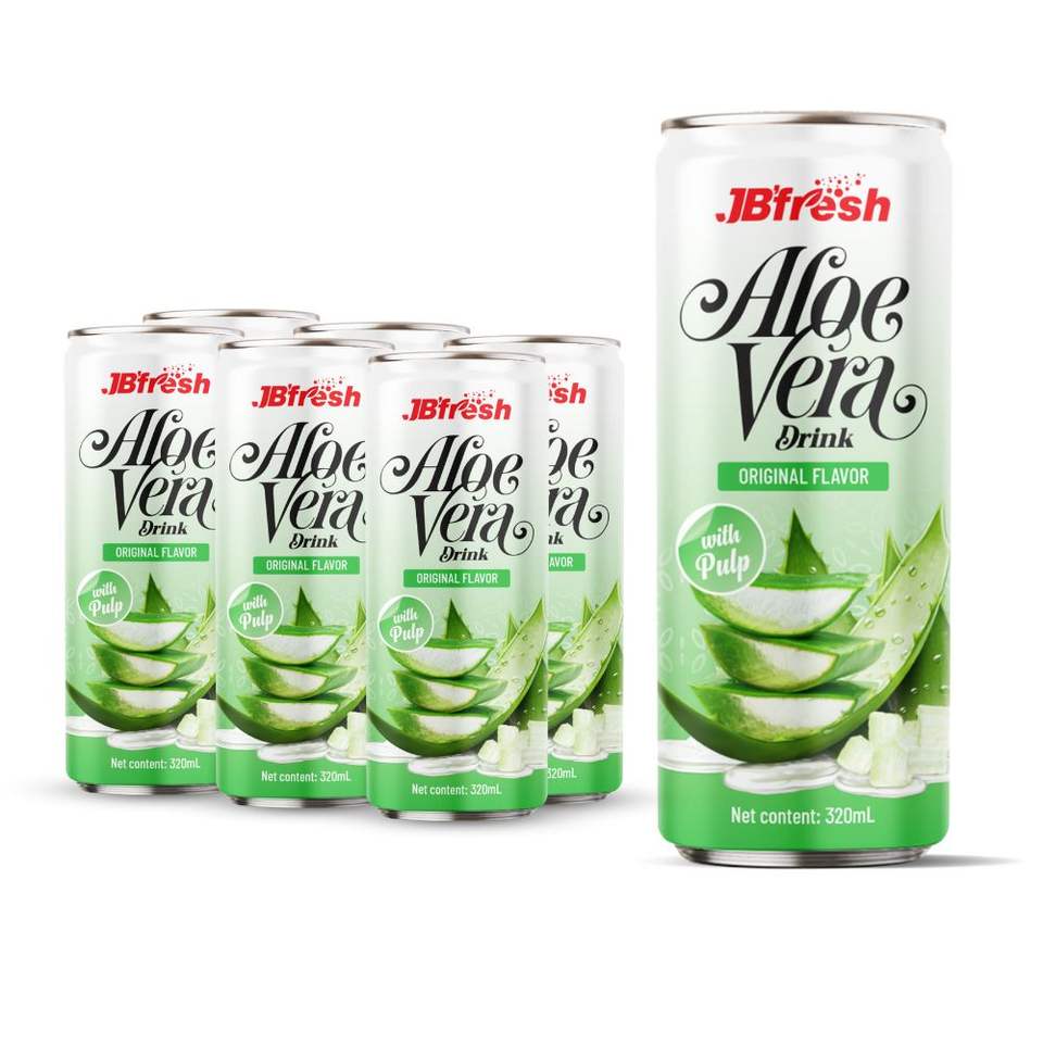 Jus d'Aloe Vera naturel avec pulpe de fruit de la passion 320ml en conserve expédition rapide OEM ODM échantillon gratuit JB'fresh usine au Vietnam GMP
